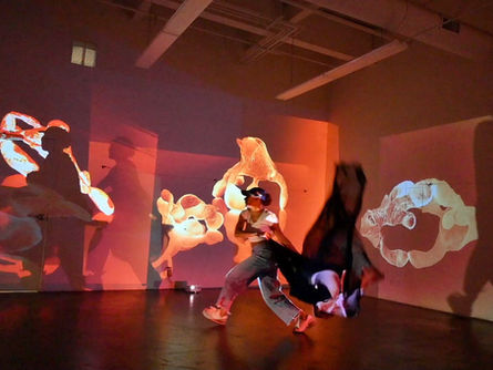 2025, 14x20x25 feet, photographs of kiln formed glass sculptures, projectors. Moriah Costa movement. Developed at KALA Art Institute, Berkeley CA. Photography credit: Anna Kovina